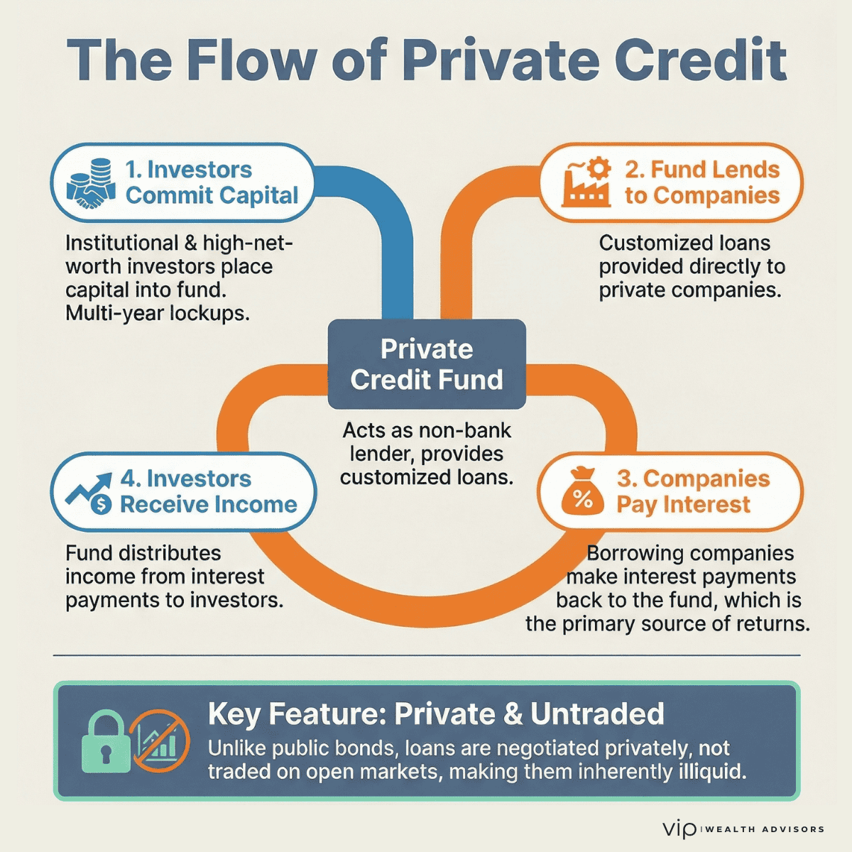 - Private credit offers income-driven returns but comes with meaningful illiquidity and complexity.
